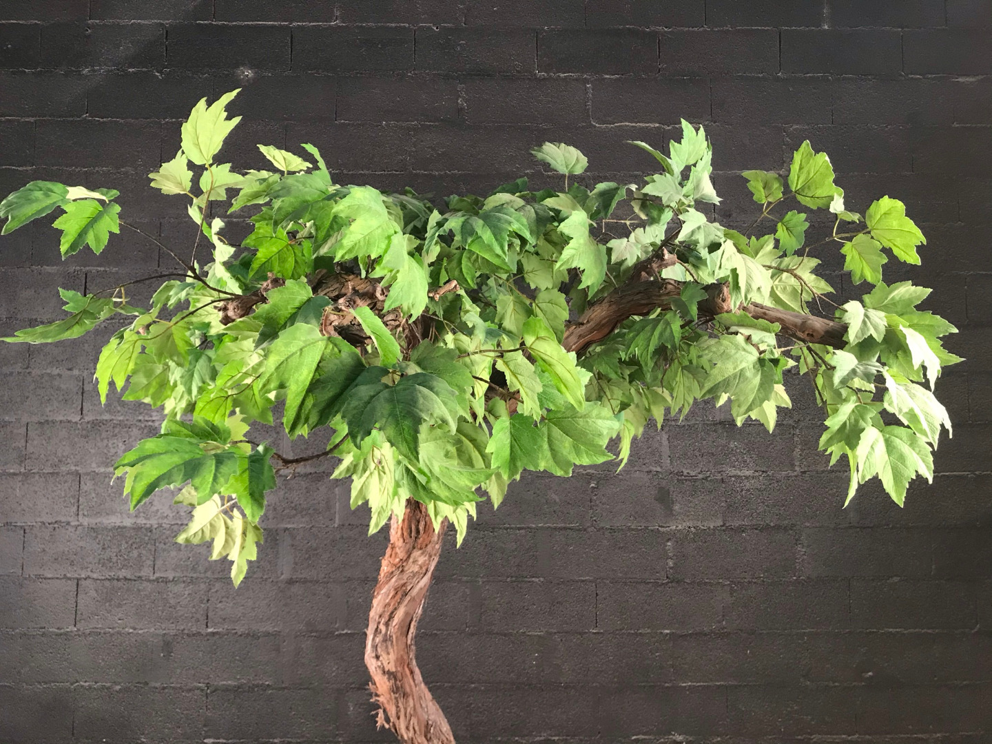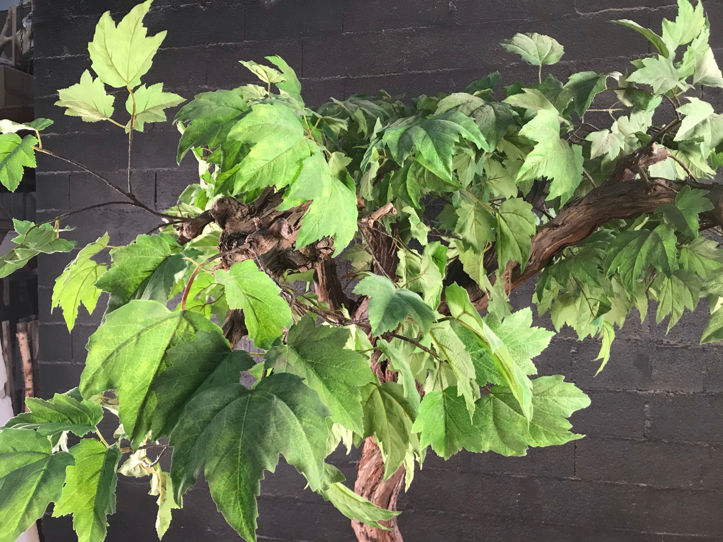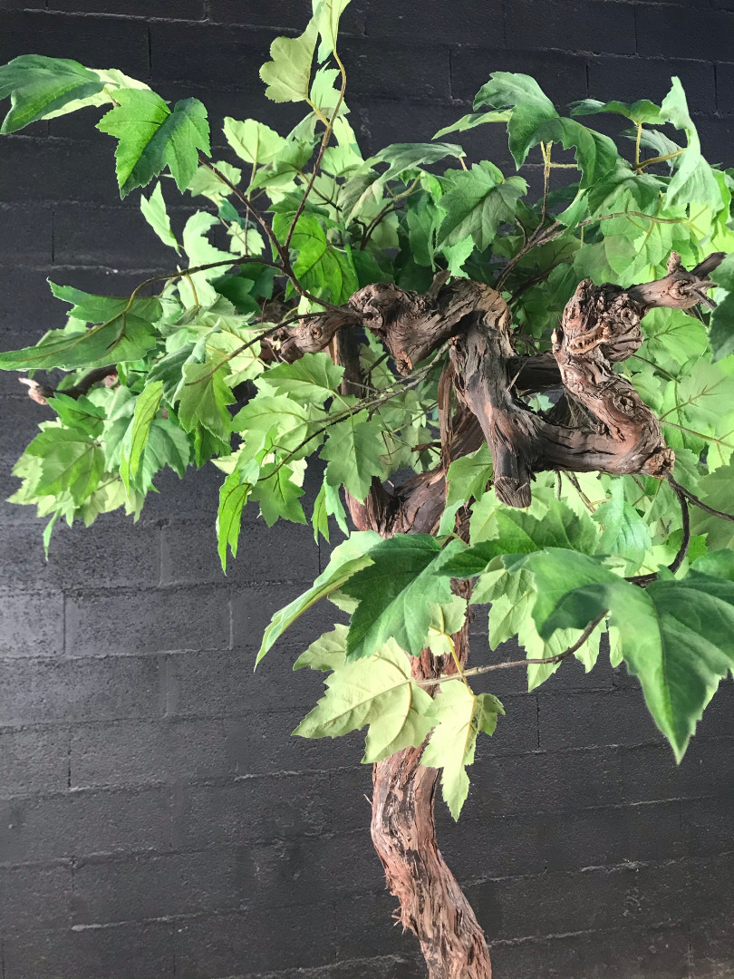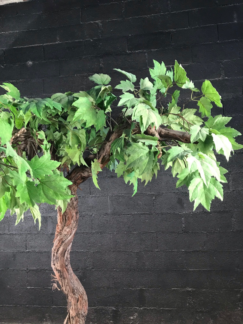 Cet arbre est réalisé à base d'un tronc naturel, sur lequel nous avons greffé des branches de vigne artificielles.