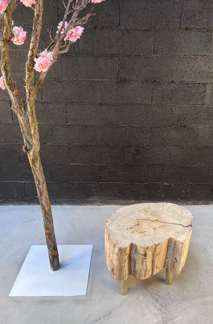 Ces tables basses sont coupées dans des troncs en bois flotté
