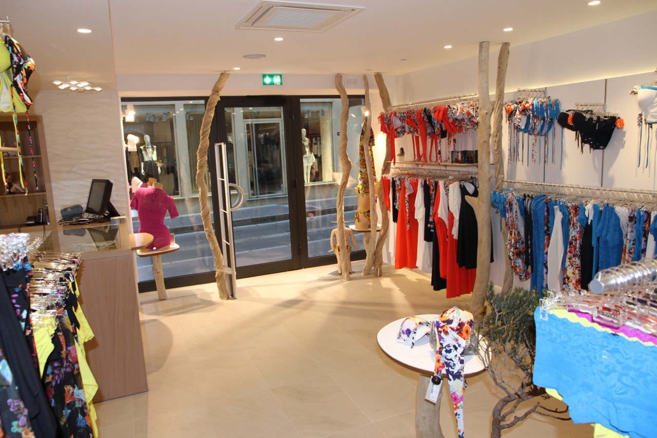 Nous avons décoré avec du bois flotté et des lianes plusieurs boutiques Pain de Sucre.
