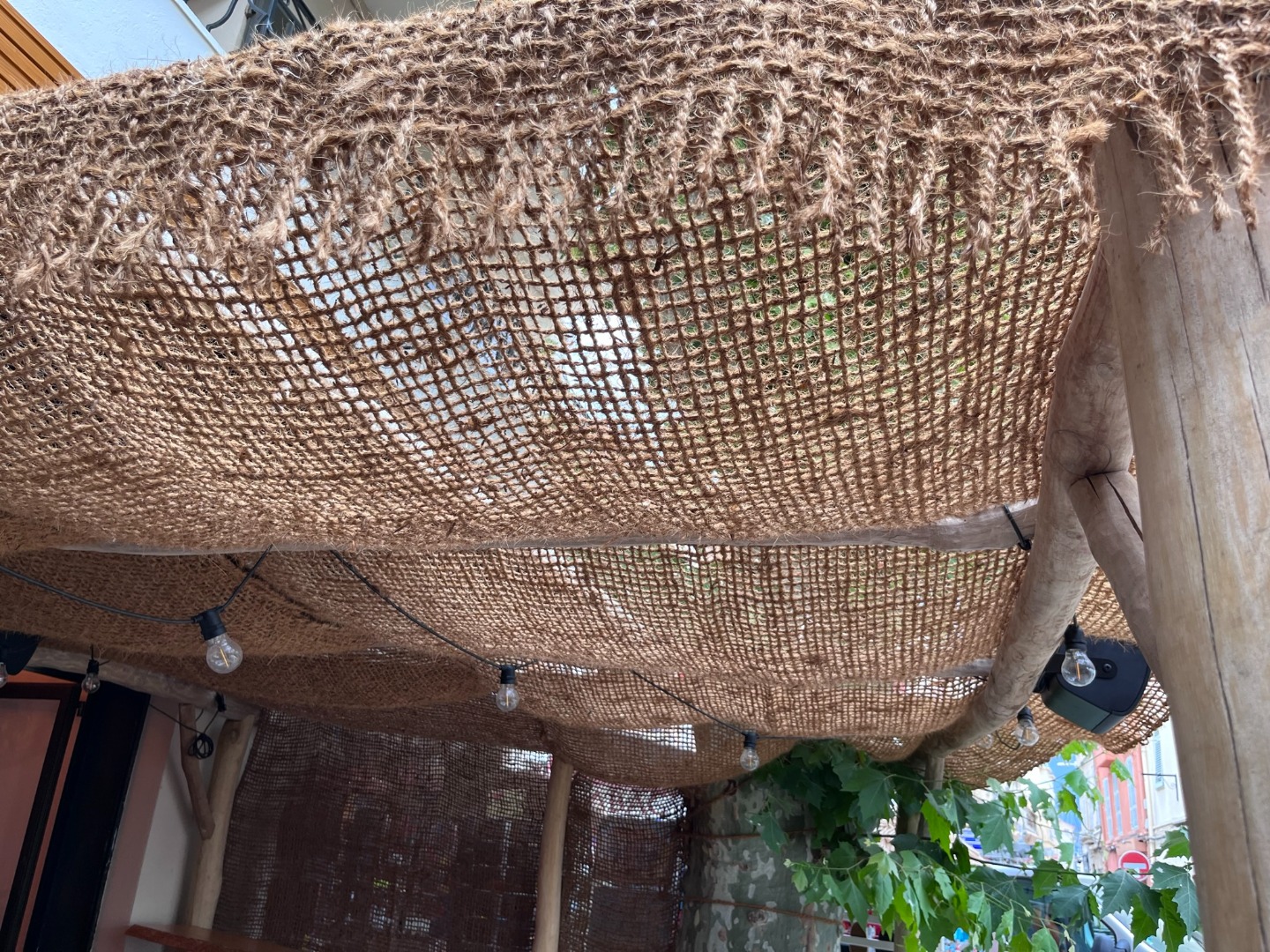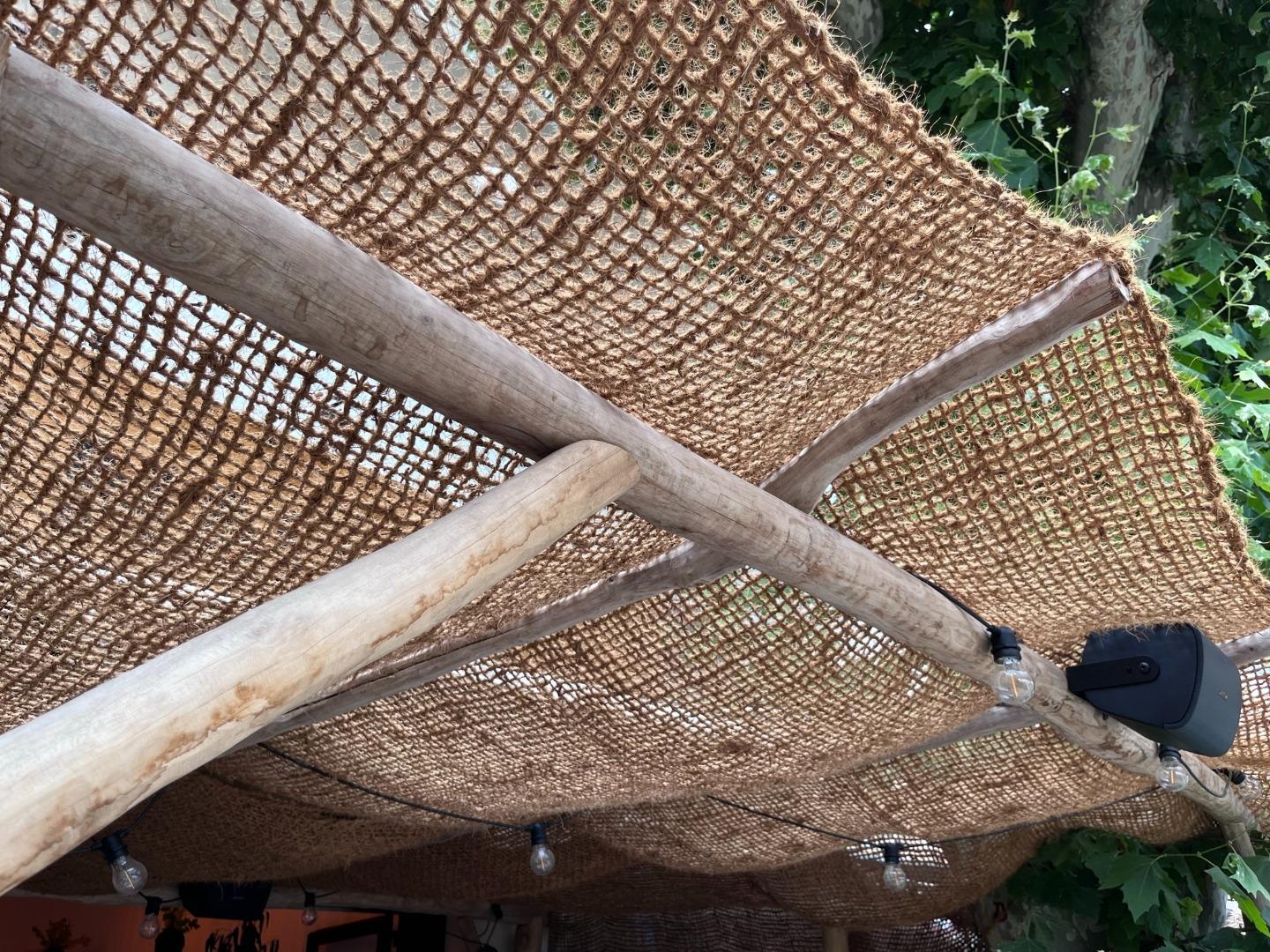 Chaque pergola est conçue avec soin, dans le respect des matériaux et de l’environnement. La fibre de coco, issue de ressources renouvelables, s’allie parfaitement au bois pour une esthétique naturelle et durable.
