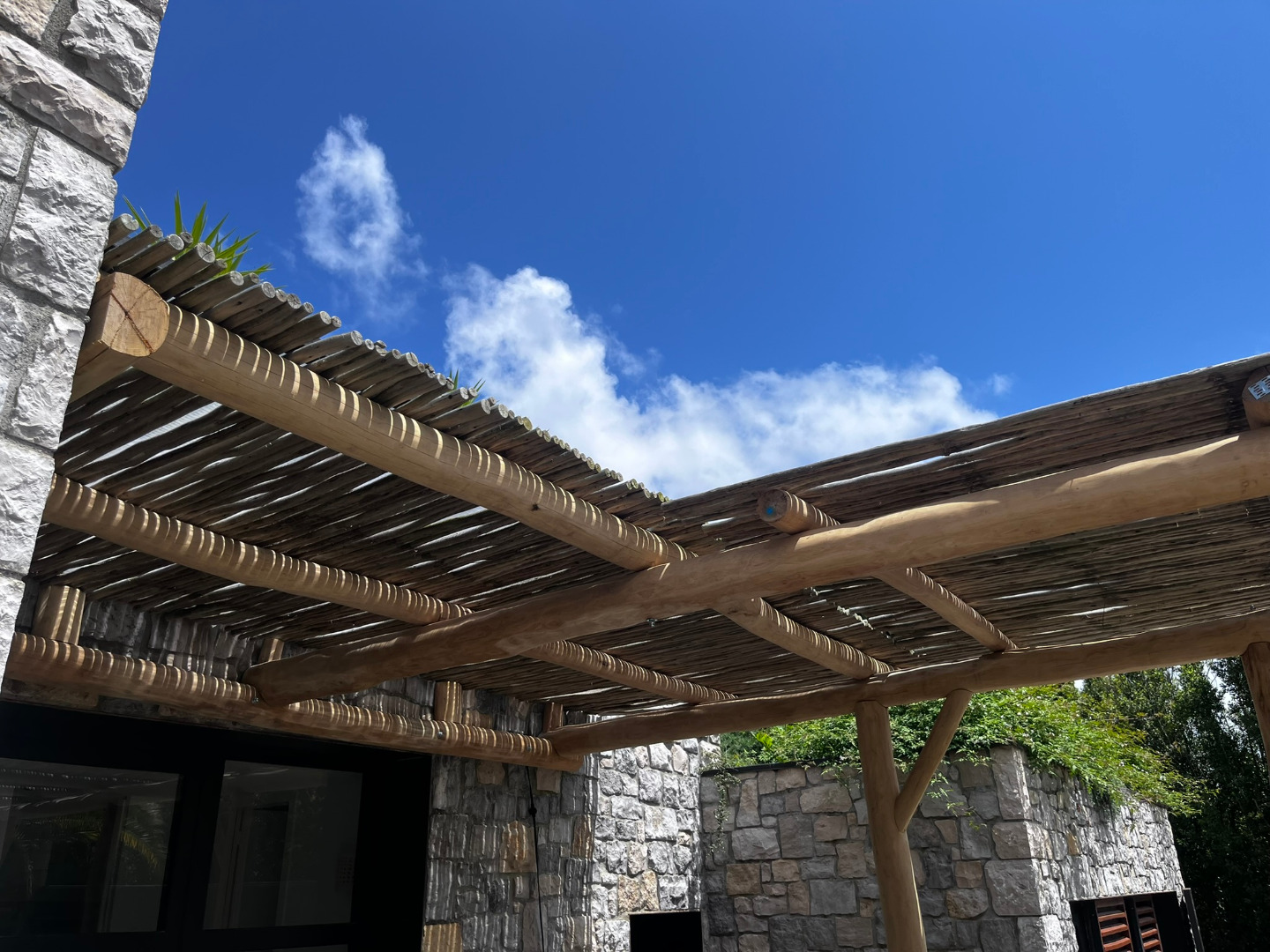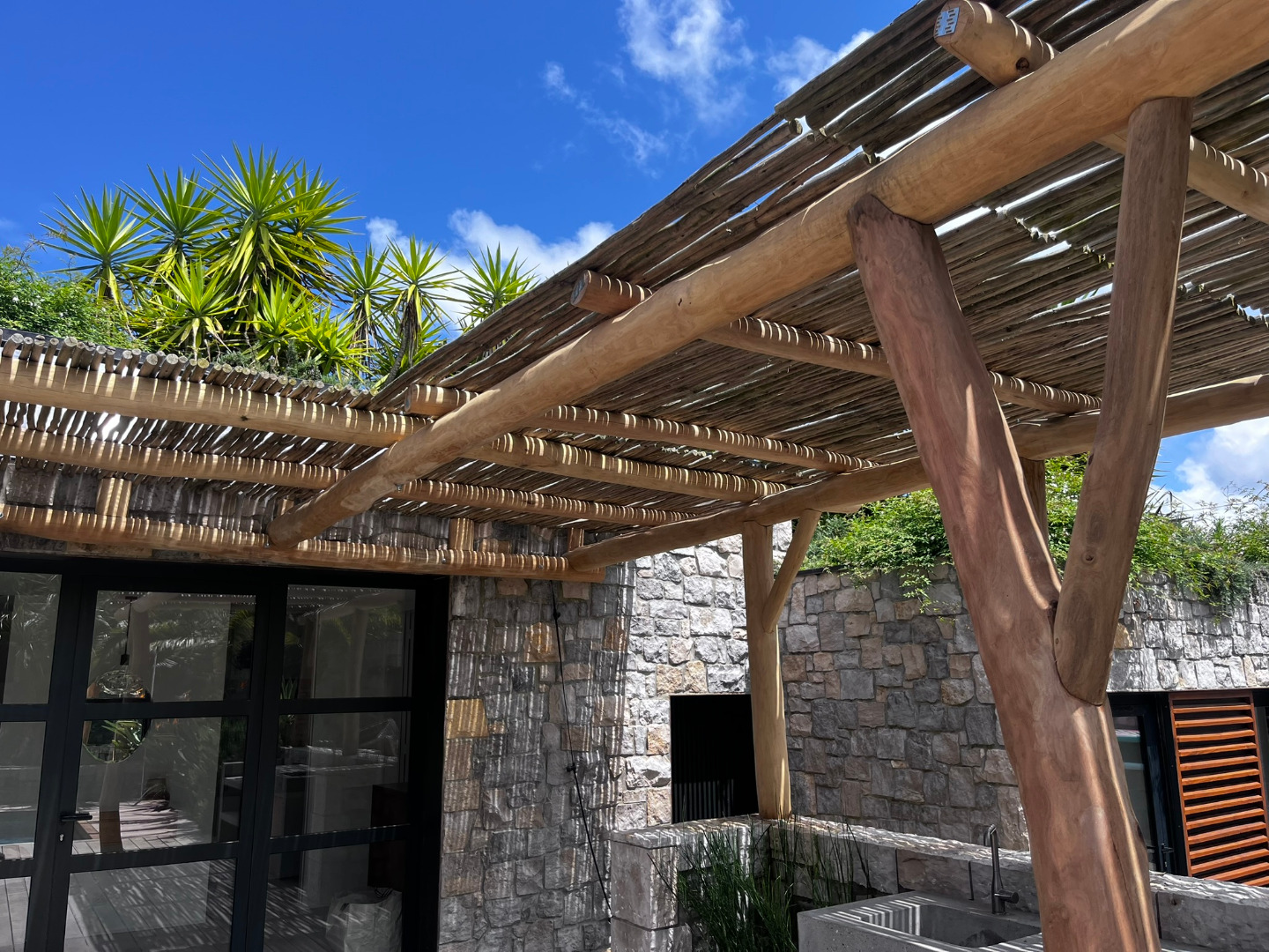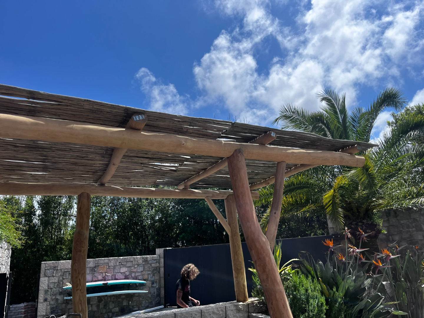 Cette pergola à été réalisée en bois flotté dans le village de Guethary.