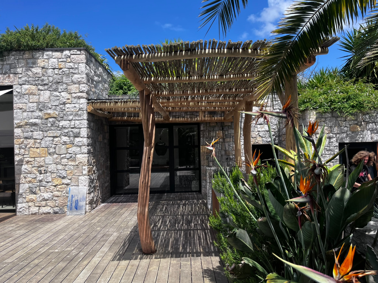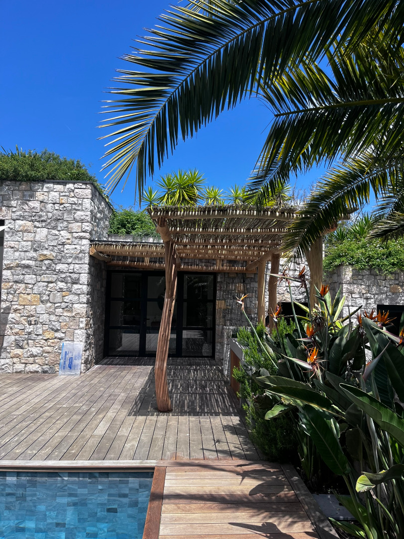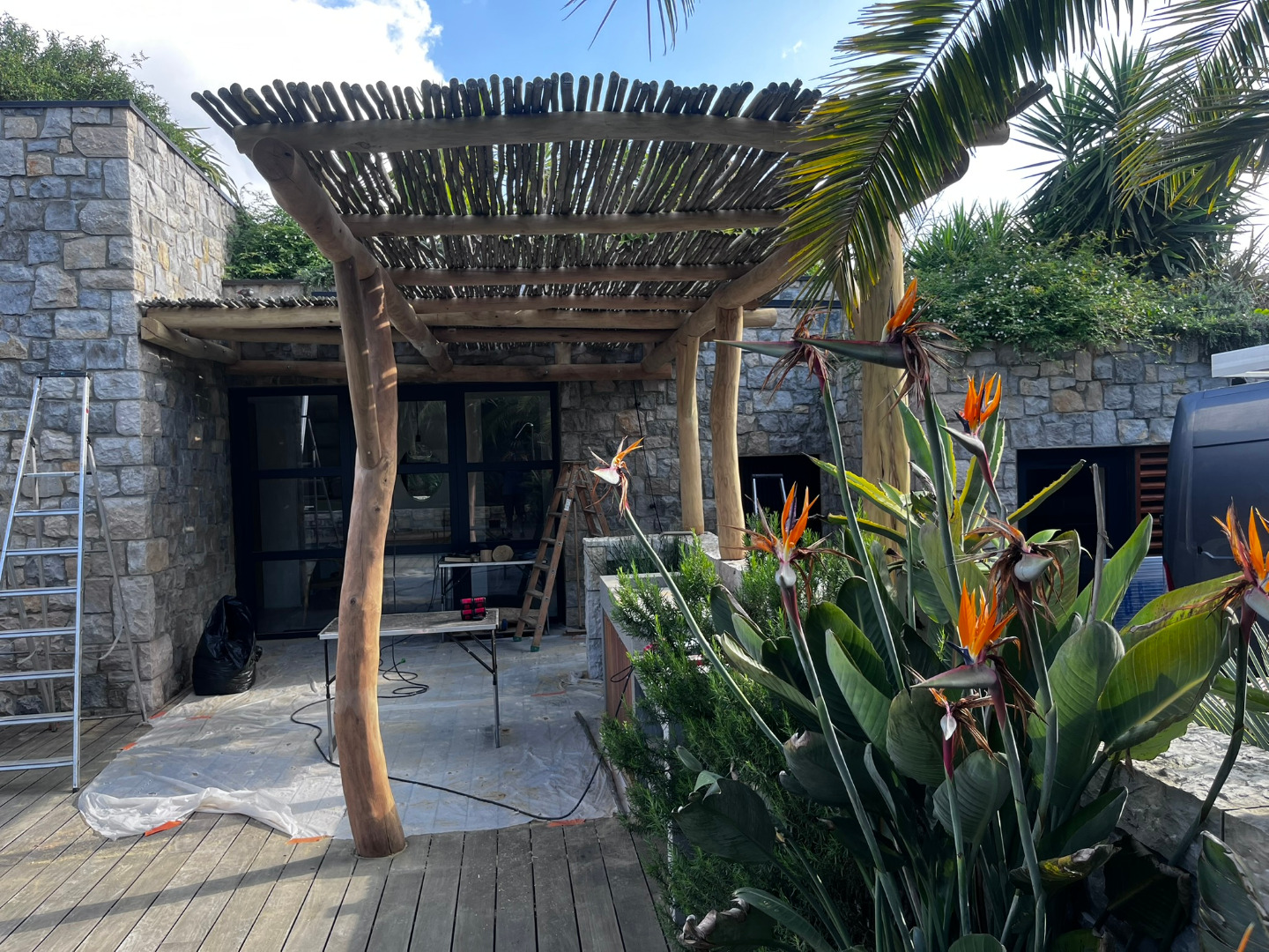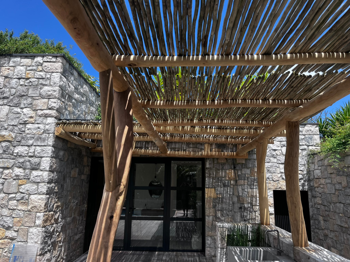 Cette pergola à été réalisée en bois flotté dans le village de Guethary.