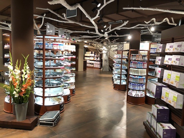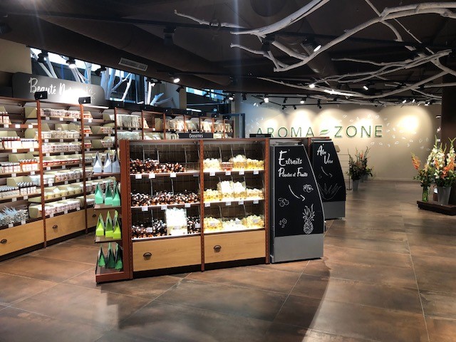 Cet arbre en bois flotté couvre toute la surface de la boutique Aroma Zone à Lyon soit 700m2 environ