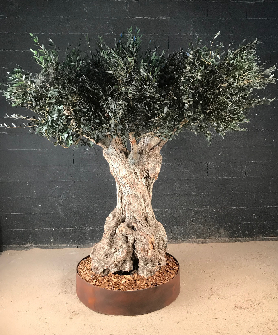 Cet olivier mesure environ 2m40 de hauteur par 2m40 environ d'envergure. Ils sont réalisés sur mesure et les tarifs dépendent de leur tailles. ils sont en général avec plusieurs branches afin de leur donner une allure d'olivier que l'on trouve dans les champs d'olivier du Languedoc. Des caisses spéciales sont réalisées pour les expéditions.