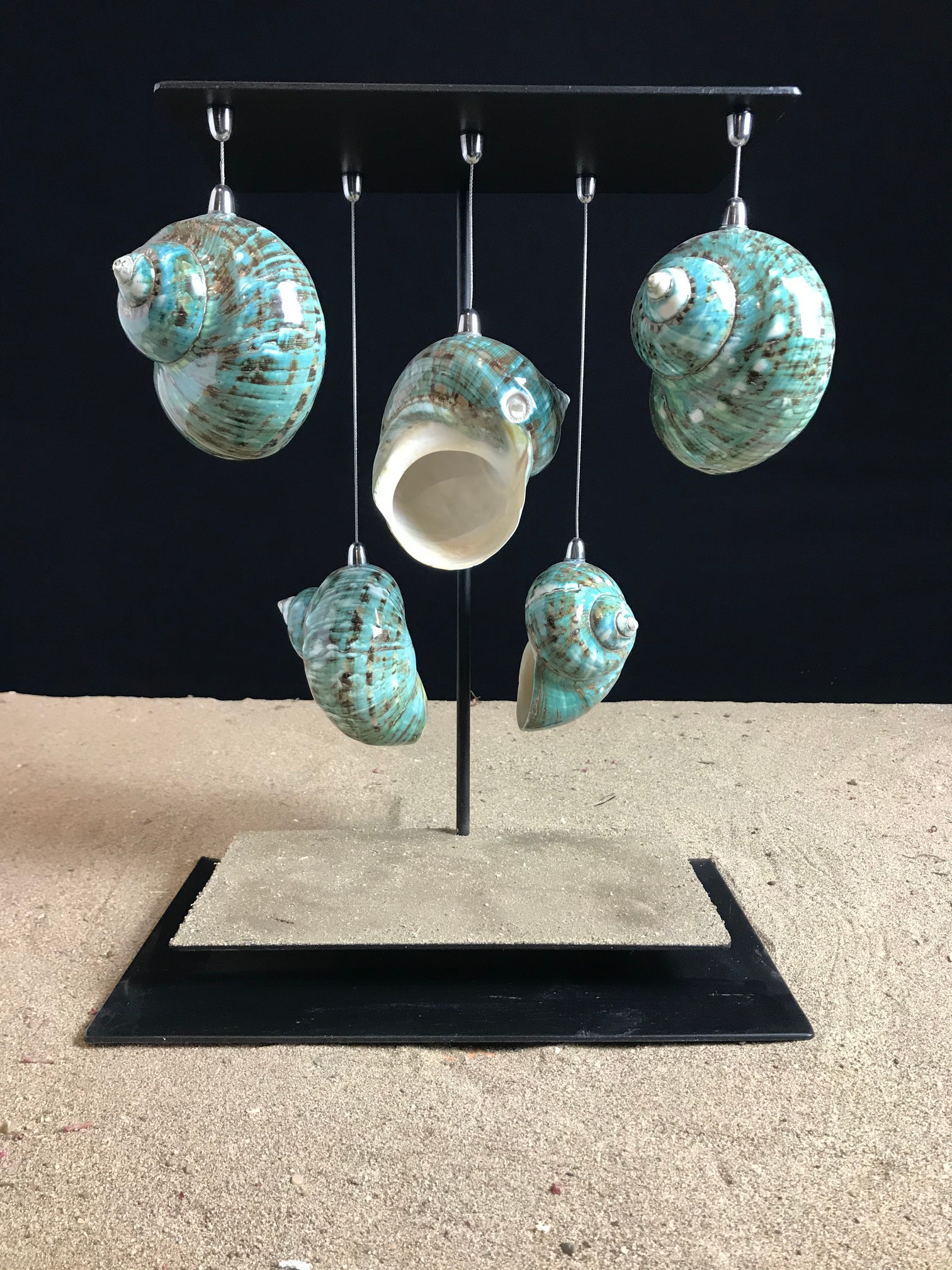 Ils sont suspendus sur un socle en acier peint en noir.